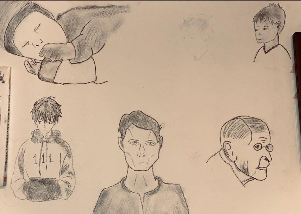 My Main observation is the circular shape your composition takes with a running theme of young to old. The circular design composition has an opportunity to work really well in this piece but becomes confused with the placement of the sleeping baby and the small boy. I would recommend swapping those placements and perhaps to add more interest not only have the subjects represent the change from young to old but also from cartoony to anime to realism so you and your audience have a variety of rendering styles to explore. There’s also a heavy use of hard outlines that give a traced appearance. For more stylized work there wouldn’t be much of an issue but since the focus of our class leans more into realism it would also be recommended to avoid hard outlines in realistic renderings.